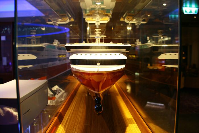Stod ett antal fartygsmodeller ombord. Stavangerfjord är byggd 2013 och är en färja som drivs med LNG vilket betyder Liquefied Natural Gas (Flytande naturgas). Så även om färjan är röd i skrovfärgen så är den grön till driften.