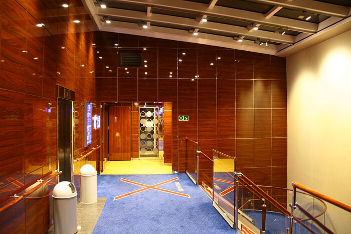 Det var verkligen en tjusig och hemtrevlig interiör fartyget hade och på bilden syns toppen på ett av trapphusen som gick till och med däck 9.