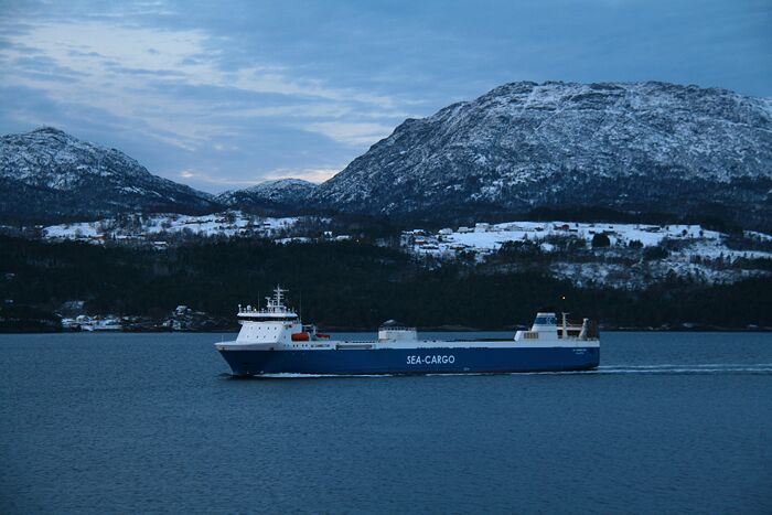 Fraktfartyget SC Connector mötte vi vid Bergen tidigare på dagen, när Stavangerfjord var på väg in i hamn så hade SC Connector lämnat. Nu körde vi om henne utanför Stord.