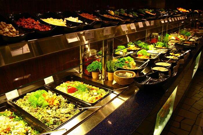 Efter så många vackra vyer och intryck från soldäcket denna måndag så smakade det utmärkt med en god måltid på kvällen. Det blev ännu en buffémåltid och här var kvaliteten på maten suverän. Jag tog som vanligt mycket laxrätter, men de var bland det godare jag käkat på en färja. Ja hela utbudet med kall, varm och efterrätter var väldigt bra. Dricka ingick dessutom i priset.