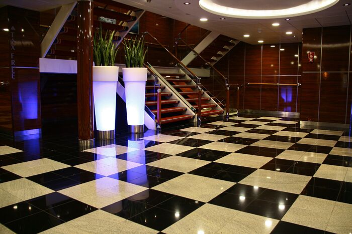 Schackmönster på golvet, men något spelande såg vi inte till. 😉