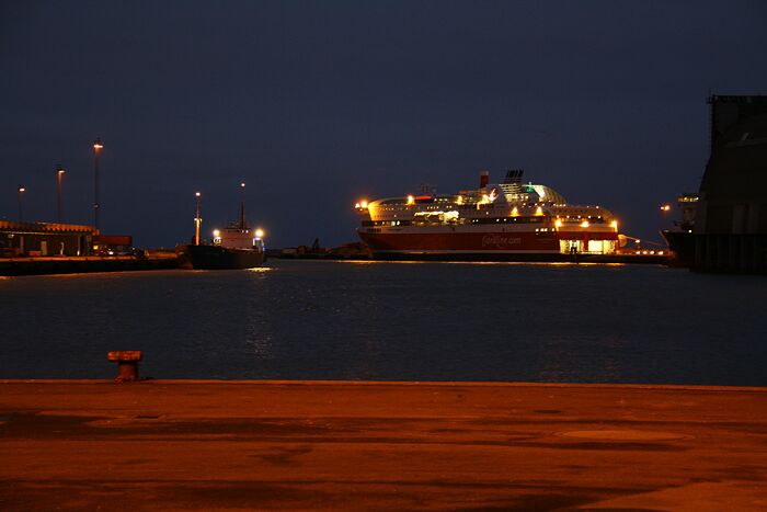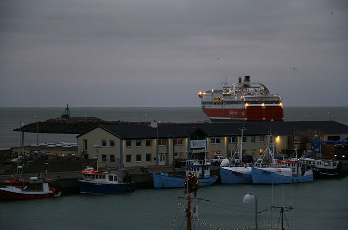 En mycket trevlig resa blev det med Fjord Lines Stavangerfjord. Mycket fint fartyg med trevlig besättning, vacker resa och väldigt god mat. Efter att käkat frukost så lämnade vi fartyget sedan vid åttatiden. Längst ut i Hirtshals hamn kom vi sedan att påbörja en promenad in mot stationen. Vi tog oss dessutom en extra sväng i den ”roliga” hamnen av någon anledning…