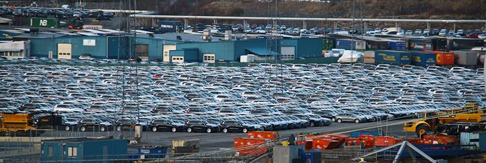 Och hamnar vi en kort bit längre åt öster så kommer den stora Skandiahamnen, som är Sveriges största containerhamn. Det stod som synes en hel del sprillans nya Volvobilar i hamnen. XC90, V70 med flera modeller.