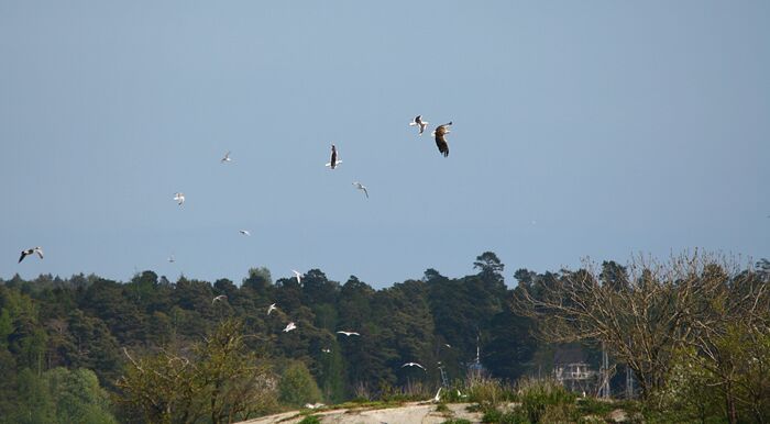 Från klippan där jag njöt av lugnet en stund, så hörde jag plötsligt ett skränigt liv från måsar vid en mindre ö inte så långt bort. Bland dessa vitfåglar så var det ju förstås en havsörn med, som säkert var ute efter skarv eller ejder, men som blev rätt så rejält mobbad av måsarna och trutarna.
