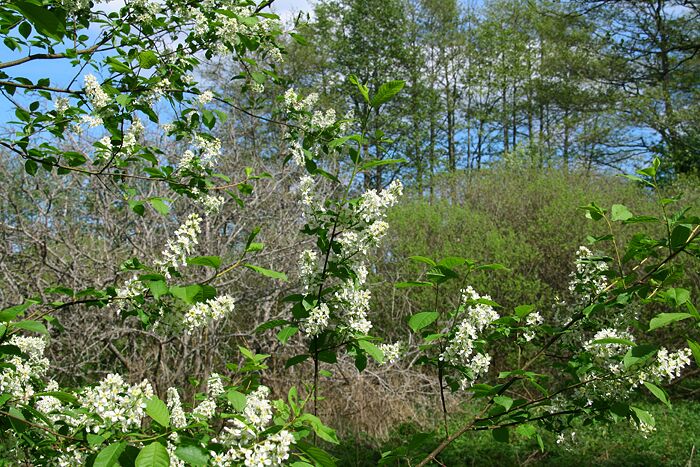 Jag hade kunnat stanna ute i Sandemar ett tag till, men då jag hade planen att fortsätta till Dalarö så passade jag in en buss vid strax innan två och lämnade därmed Sandemar för denna gång. Men innan jag kom fram till busshållplatsen så passerade jag dessa häggblommor.
