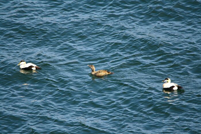 Två gudingar och en åda. Jo det handlar förstås om sjöfågeln ejder, där hannarna under våren har denna vackra vit-svarta dress.
