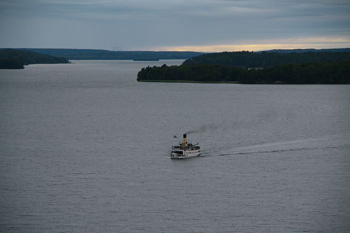 Inte riktigt lika gammal som fornborgen är s/s Blidösund som jag lämpligt nog tajmade in när den kom från Uppsala, på dess årliga resa därifrån till huvudstaden. Ska i ärlighetens namn säga att det var ett av dagens delmål att faktiskt få bilder på henne från någon lämplig plats i Görvälns naturreservat, och Gåseborg var ju inte helt galet det fotostället.