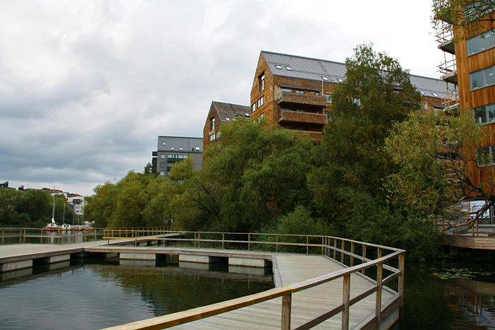 Några av bostadshusen längs ån hade fasader av trä och såg enligt min åsikt rätt trevliga ut.