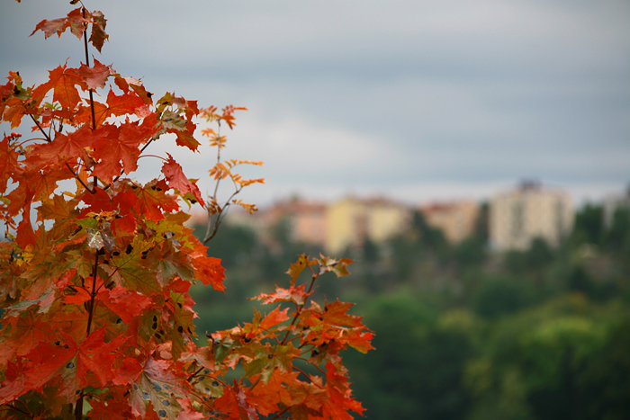 Lite mer höst, med oskarp bakgrund som visar en del av Traneberg.
