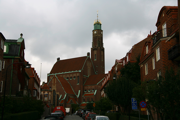 Min promenad den bara fortsatte och här har jag kommit in i en del av Lärkstaden med den karaktäristiska Engelbrektskyrkan på sin höga punkt i området.