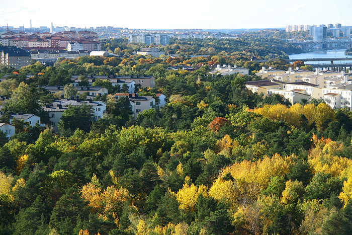 Hammarbyhöjden närmast i bild och Årsta längre bort. Det finns ju långt gångna planer på exploatering av områden i denna bild, i Sjövik vid Årstadal långt bort till höger i bilden är ju byggandet av höghus i full gång.