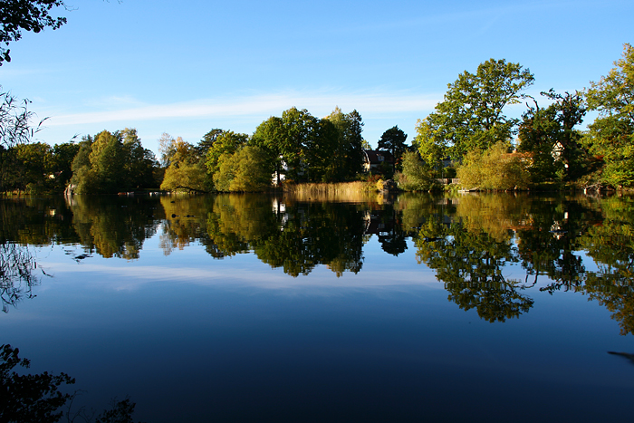 Inte bara gult, oranget och rött. Den här hösten har fram till början av oktober dominerats av grönska, men nu när kylan slagit till så lär denna grönska försvinna rätt snabbt och de sprakande varma tonerna får ett övertag bland löven. Jag promenerade längs Sicklasjöns södra strandkant.