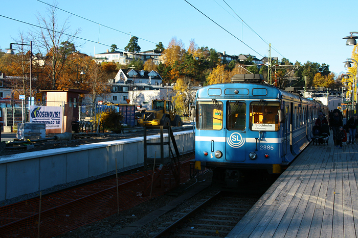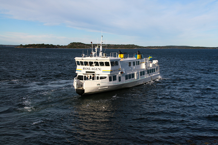 Vi träffades vid det stökiga Slussen vid klockan nio och tog därifrån ersättningsbuss för Saltsjöbanan till Henriksdal. Väl vid Henriksdals station så tog tåget vid för vidare färd till Saltsjöbaden där sedan m/s Roslagen väntade på oss och många fler vid bryggan.