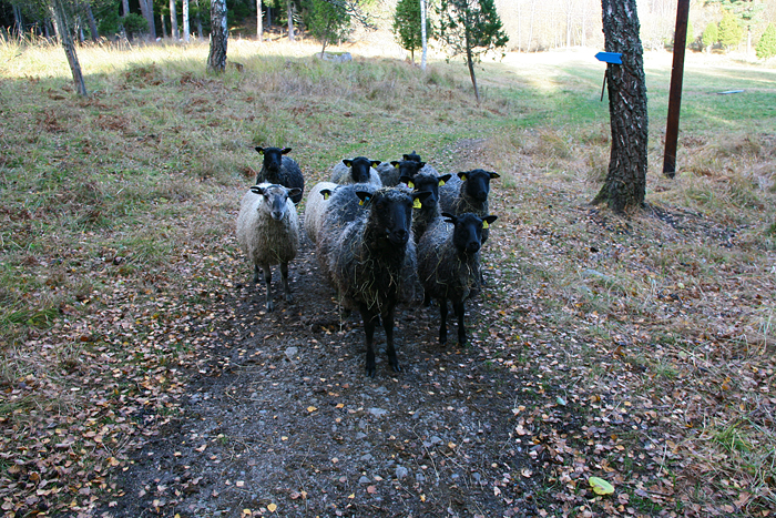Nyfikna får i en hage vid Nämdöböte ville göra oss sällskap på promenaden söderut på ön.