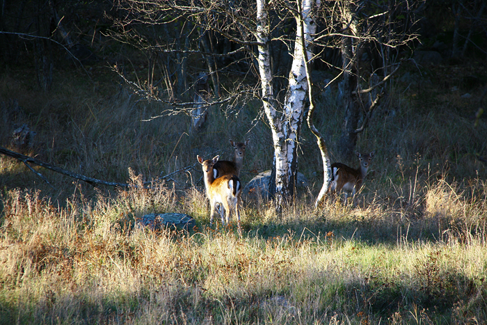 Det gäller att vara observant när man strövar på ön, för rätt som det är så kan det stå några dovhjortar inte så långt bort och stirra nyfiket på ens närvaro. Dock har de en tendens att ”tröttna” på ens närvaro och försvinna iväg ganska fort…