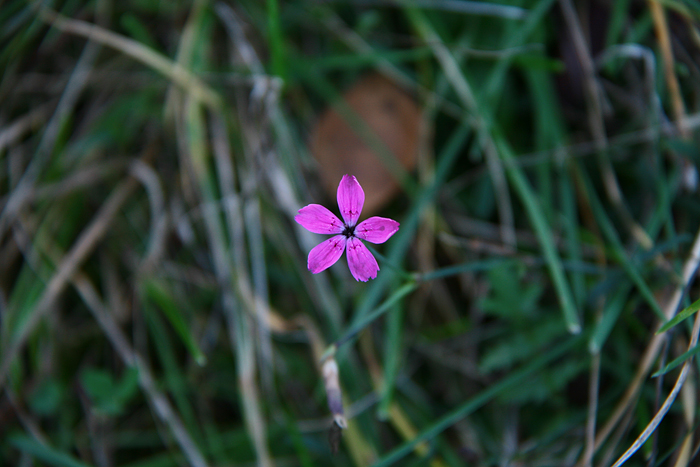 Blomstertiden kommer inte direkt nu, men enstaka blommor stack upp i gräset.
