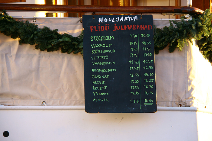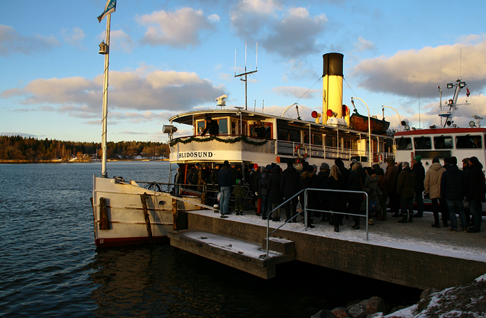 Lördagen den 3 december var det äntligen dags för en ångbåtstur igen efter ett par månaders uppehåll, och det blev även årets sista ångbåtstur för min del. S/S Blidösund blev fartyget för dagen och resan gick ut till Blidö och bryggan Almvik där det hölls en julmarknad denna lördag. Avgångstid från Stockholm var halv tio.