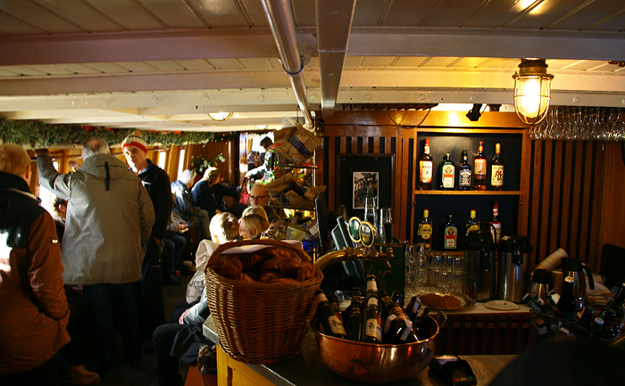 Ombord var det julpyntat och fint. Förutom denna resa till julmarknaden vid Almvik, samt en reguljärtur till Norrsund (även det på Blidö) dagen före julafton, så är julbordsturerna den huvudsakliga vintertrafiken för s/s Blidösund. Efter 23 december är det vintervila som gäller för damen tills dess att musikturerna drar igång i maj.