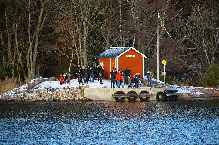 Som sagt, denna lördags destination för ångaren kom att bli Almvik på Blidö. Vid Almvik hålls varje år i början av december en julmarknad vid bryggan, och till denna julmarknad går det alltså att resa med Blidösund på en vintertur från Stockholm. Men inte bara resenärer från stan, utan även lokalt resande från bryggor på bland annat Blidö och Yxlan.