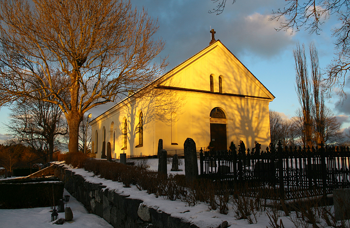 Vi tog kurs söderut på Blidö och gick först förbi Blidö kyrka, en knapp kilometer från Almvik.