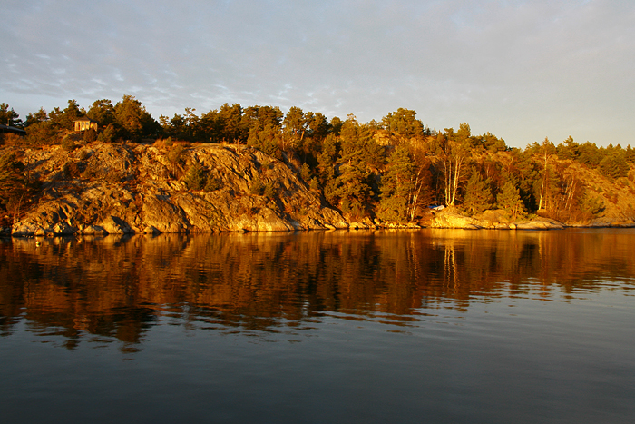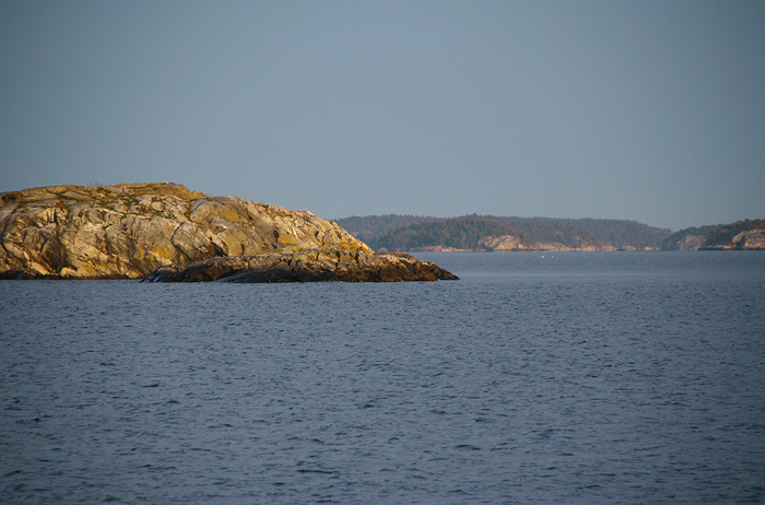 In i smalare passager än Mysingen. 😉 Här låg vattnet blankt och fint mot klipporna på Norrö.