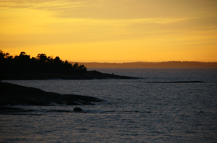På de ca 55 minuterna jag hade att spendera på ön så gick jag bara en sväng till andra sidan ön, där jag stod en stund på några klippor och njöt av Mysingen och av den pågående solnedgången.