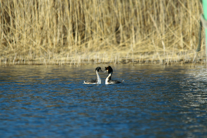 Vårkänslor i sundet mellan Hustegaholm och Ekholmsnäs på Lidingö den 28 mars. Skäppdoppingar som visar kärlek till varandra.