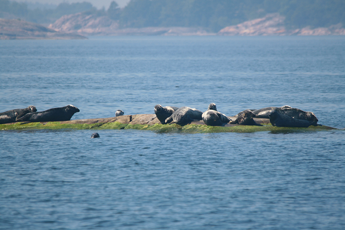 Fortsätter på temat ”ställen som går att komma till enkelt ifrån Dalarö” – för Huvudskär är numera enkelt att komma till om man inte vill lägga ner en förmögenhet för att nå dit. Tre dagar i veckan sommartid så går det att på Waxholmsbolagets taxa åka ut med båten Öfararen till Huvudskär. Båten utgår ifrån Dalarö, men det går även att komma med Utöbåten från Stockholm och gå av vid Fjärdlång för byte till Öfararen. Just så var fallet för mig på midsommardagen som bjöd på underbart sommarväder, ett väder som även uppskattades av sälarna! 😉