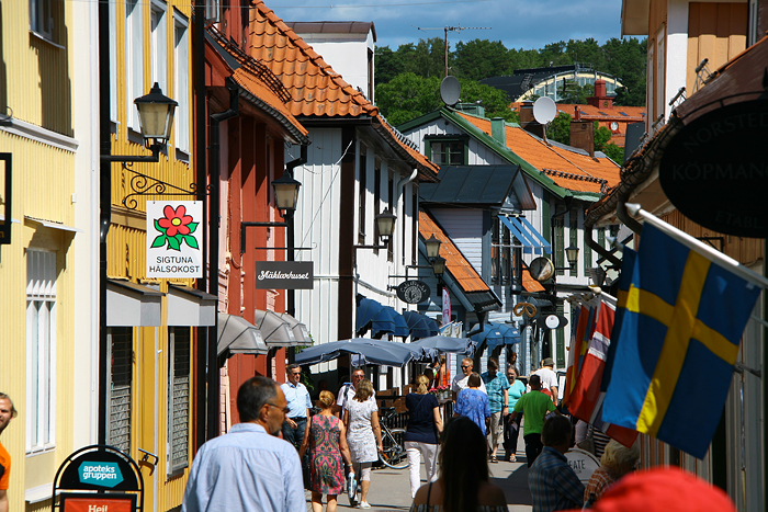 Den 20 juli besöktes Sveriges kanske äldsta stad, med anor från 900-talet – Sigtuna. Åkte sjövägen ut till mälarstaden tillsammans med släktingar under en av de fina och varma sommardagarna i juli. Bilden visar Stora gatan som är huvudgatan och således även turiststråket i centrala Sigtuna. Längs denna gata hålls även en stor julmarknad under första, andra, tredje och fjärde advent – en julmarknad som brukar locka många besökare.