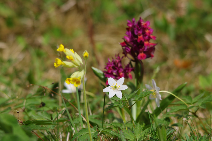 Vitsippan i fokus, men inga dåliga grannar i oskärpa som gullvivan samt Adam och Eva.