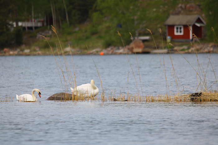 Efter att vi tagit in synintrycket av de vackra blommorna så gick vi in en stig för att komma till strandkanten på öns norra del. Vi tog en paus och fick se bland annat familjen Svan ute.