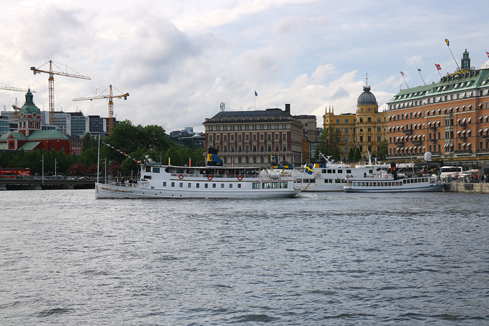 Och Storskär och Norrskär går ju som vanligt i tät reguljär trafik för Waxholmsbolaget under sommaren. Storskär går turer till bland annat Ramsö, Ljusterö och Husarö under sommaren – medan Norrskär kör till Gällnö, Ramsö och Sandhamn. Norrskär byggdes som Sandhamns Express så det resmålet är hon väl bekant med. 😉 På bilden har man gått av vid Strömkajen med en mycket positiv känsla då det här var en mycket trevlig Skärgårdsbåtens dag trots lite färre fartyg.