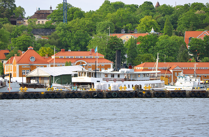 Stackars Mariefred som fått problem med ångpannan och därmed får vänta på säsongspremiär. Snygg gest av skepparna att skicka en hälsning med ångvisslorna vid passage av Beckholmen. Mariefred brukar normalt delta i Skärgårdsbåtens dag. Och som namnet skvallrar om så går hennes ordinarie trafik mellan Stockholm och Mariefred, en linje hon har gått ända sedan hon byggdes år 1903 – det är imponerande!