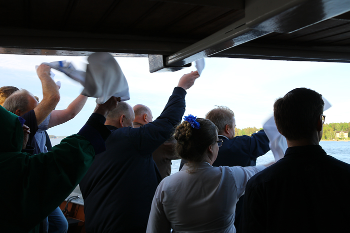 Ombord Blidösund gick man runt och delade ut handdukar, så vi kunde ge de andra en ordentlig hälsning. 😉
