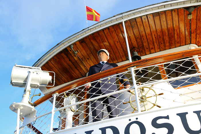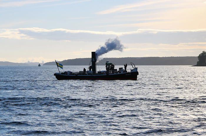 Biljetter till Skärgårdsbåtens dag kan man förbeställa innan, eller i mån av plats köpa på kajen direkt innan avfärd. Brukar som oftast inte problem alls att köpa innan avgång, åtminstone inte till deltagande motorfartyg som har ett billigare biljettpris. Avgångstid är 18:15 och då börjar spektaklet med att alla deltagande ångfartyg visslar med sina ångvisslor – först en gång var för sig med tre långa signaler, sedan en gemensam lång signal som jag lovar hörs ganska bra. 😉