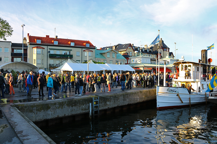 Storskär låg inte först under hela resan ut, men i Tenösundet när Vaxholm närmade sig så var skönheten byggd 1908 i täten igen. Ja denna kväll deltog ju bara skönheter förresten. 😉 En fascinerande syn är folkmängden på kajen i Vaxholm.