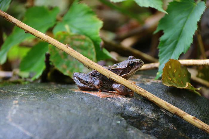 Direkt efter att kommit iland på Lidö, som ligger nära Rådmansölandet, så gick jag in på en naturstig. Tidigt på denna naturstig fick jag se en groda. Den satt stilla en stund på en sten så jag fick hyfsade bilder på den, vilket jag tackade för naturligtvis. 😉