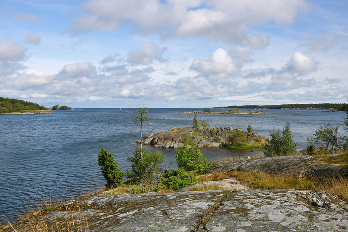 Den del av Lidö som jag gick naturstigen på kallas för Söderkalven, en sydlig del av ön naturligtvis och i läge mot öster. På denna bild syns Ålands hav längre bort, medan ön som syns till höger i bild är Tyvö.