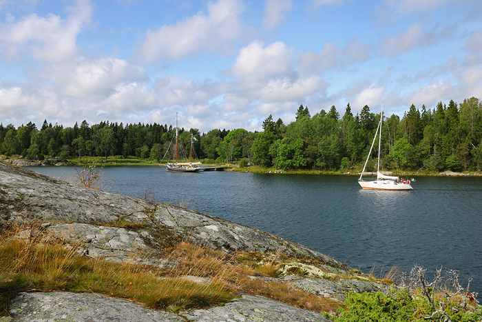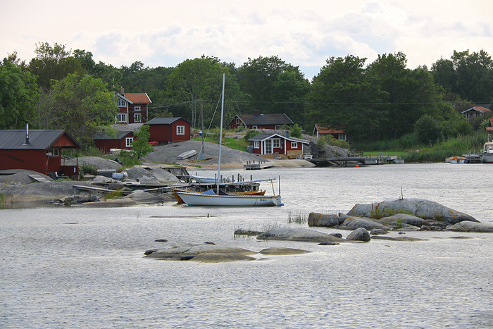 Denna vackra naturhamn, i form av en vik, kallas för Österhamn. Trevligt nog så låg ett segelfartyg inne vid bryggan.