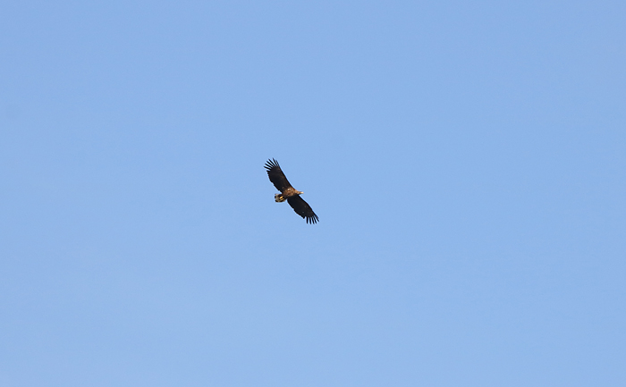 När jag inväntade båten igen på bryggan så fick jag se en mäktig vy ovan värdshuset. Två havsörnar var i farten och flög där ovan, på ganska nära avstånd.