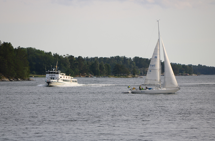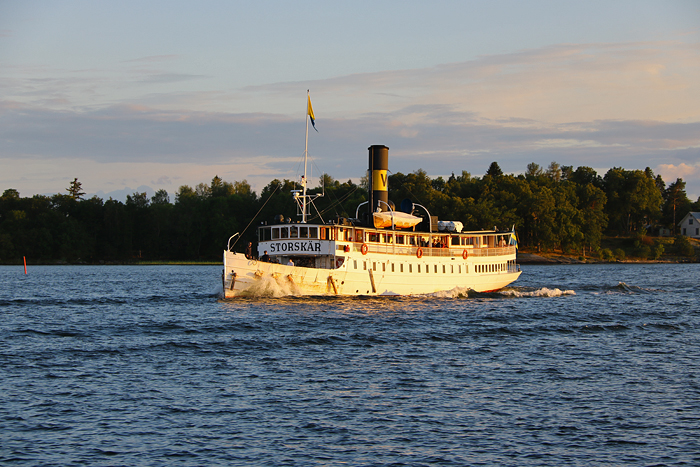 På Södra Vaxholmsfjärden fick jag se en skönhet! Storskär på väg på sin kvällstur som efter Vaxholm kom att gå runt Tynningö.