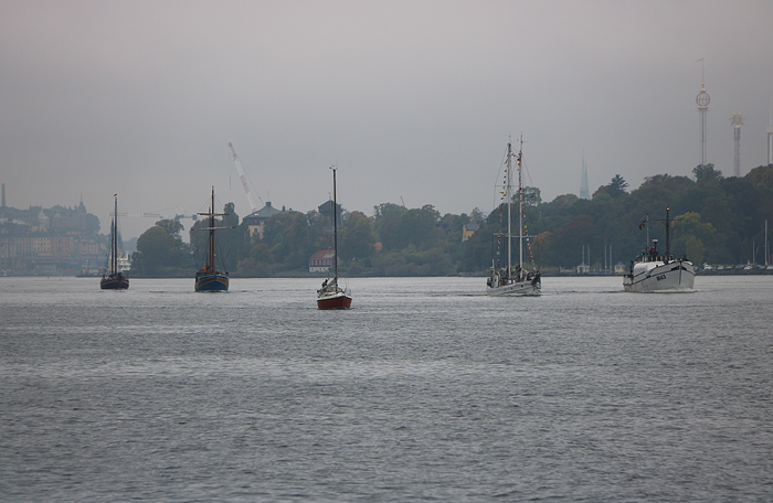 Ett gäng båtar som kom rätt samlade på väg ut från Stockholm, dock inga följeslagare till Sankt Erik.