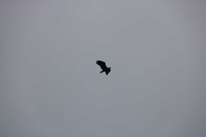 Så kom en stor fågel ifrån Djurgårdshållet, och eftersom det brukar finnas ganska mycket gråhäger vid Isbladskärret så tänkte jag först att det var en häger. Men ganska snart visade det sig istället vara en havsörn som flög förbi Nacka strand och tog sikte på Fjäderholmarna.