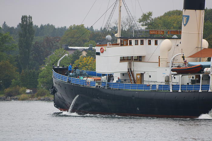 Dagens stora händelse var att få se ångisbrytaren Sankt Erik ute på sjön för egen mäktig maskin. Sankt Erik har förutom en provtur förra året inte varit ute på några turer sedan år 2007. Hon ligger som museifartyg vid Galärvarvet, alldeles utanför Vasamuseet. Fartyget är byggt 1915 på Finnboda varv, ett varv vars område numera som vid så många andra sjönära lägen inhyser bostäder.
