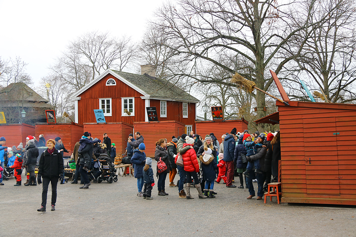 Gick av tunnelbanan vid Karlaplan och gick därefter ner till Skansens huvudentré. Buss 67 som jag skulle fått vänta 5 minuter på vid Karlaplan kom samtidigt som mig till Skansen, därav hade jag inte haft något nöje av att åka den. 😉 På julafton är det fri entré in till Skansen, vilket många passade på att utnyttja.
