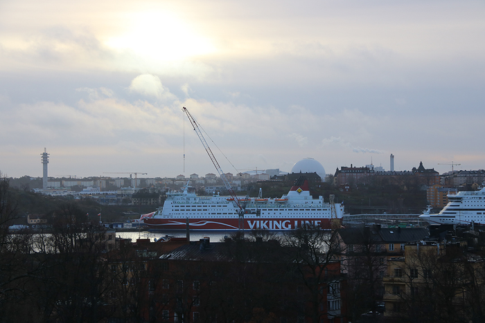 Uppe vid Solliden så kom faktiskt solen fram lite grann och sken över staden. Vid Stadsgården på Södermalm låg Viking Lines färjor Mariella samt Cinderella.