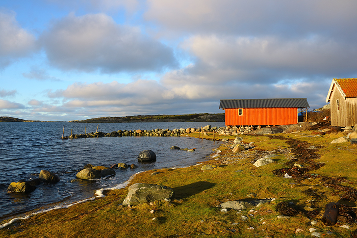 Röda stugor och brygghus matchas väl med Koster Marins röda fartyg.