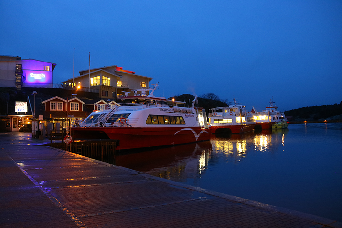 Väl i hamn var vi igen strax efter halv två. Vårt tåg kom att avgå från stationen strax innan halv tre. Biljetten kostade ungefär 200 spänn till Göteborg. Det var ett par härliga dagar i Strömstad, som jag gärna återkommer till en varmare årstid.