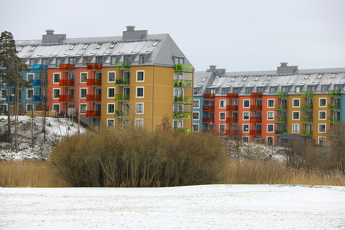 Ett par färgglada hus vid Sörentorp.