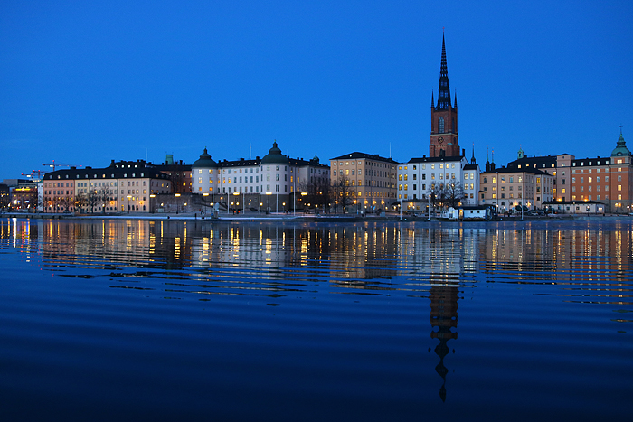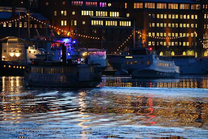 Åkte över med Djurgården 4 till Riddarholmen i det magiska, blåa ljuset.